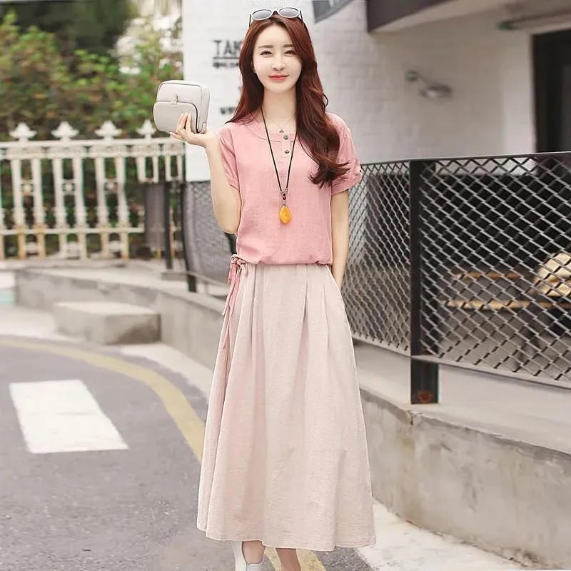 高档棉麻套装女2025夏季新款韩版气质减龄遮肚显瘦两件套裙子潮