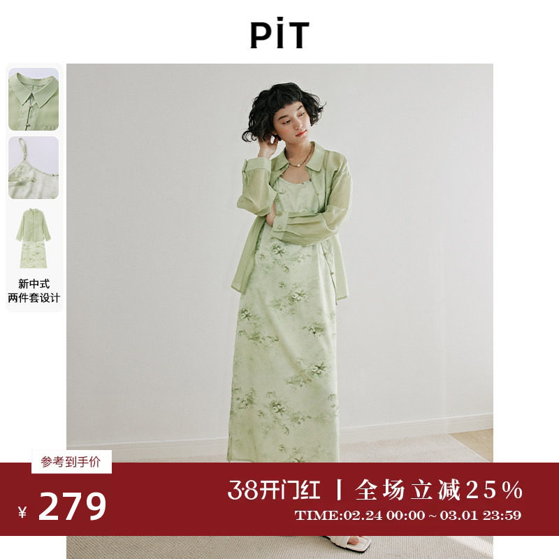 今年流行夏季两件套别致漂亮吊带连衣裙子高级感防晒外搭衬衫套装