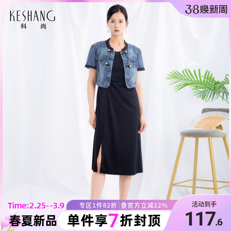 科尚女装2025夏季新款时尚减龄牛仔裙套装盘扣国风显瘦两件套裙子
