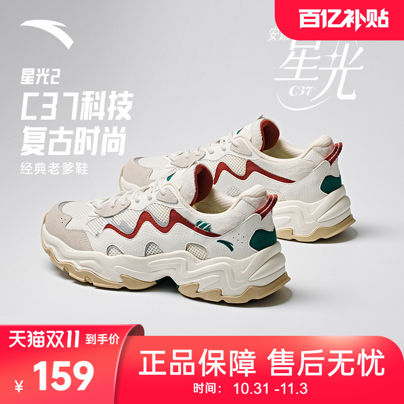 安踏星光2丨革网拼接复古时尚老爹鞋女冬季休闲鞋百搭潮流运动鞋