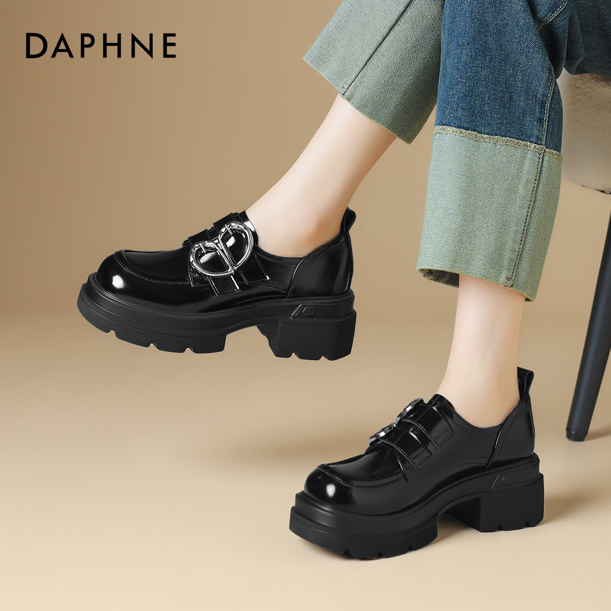 达芙妮时尚单鞋休闲鞋新款秋冬百搭女气质乐福单鞋玛丽珍鞋工作鞋
