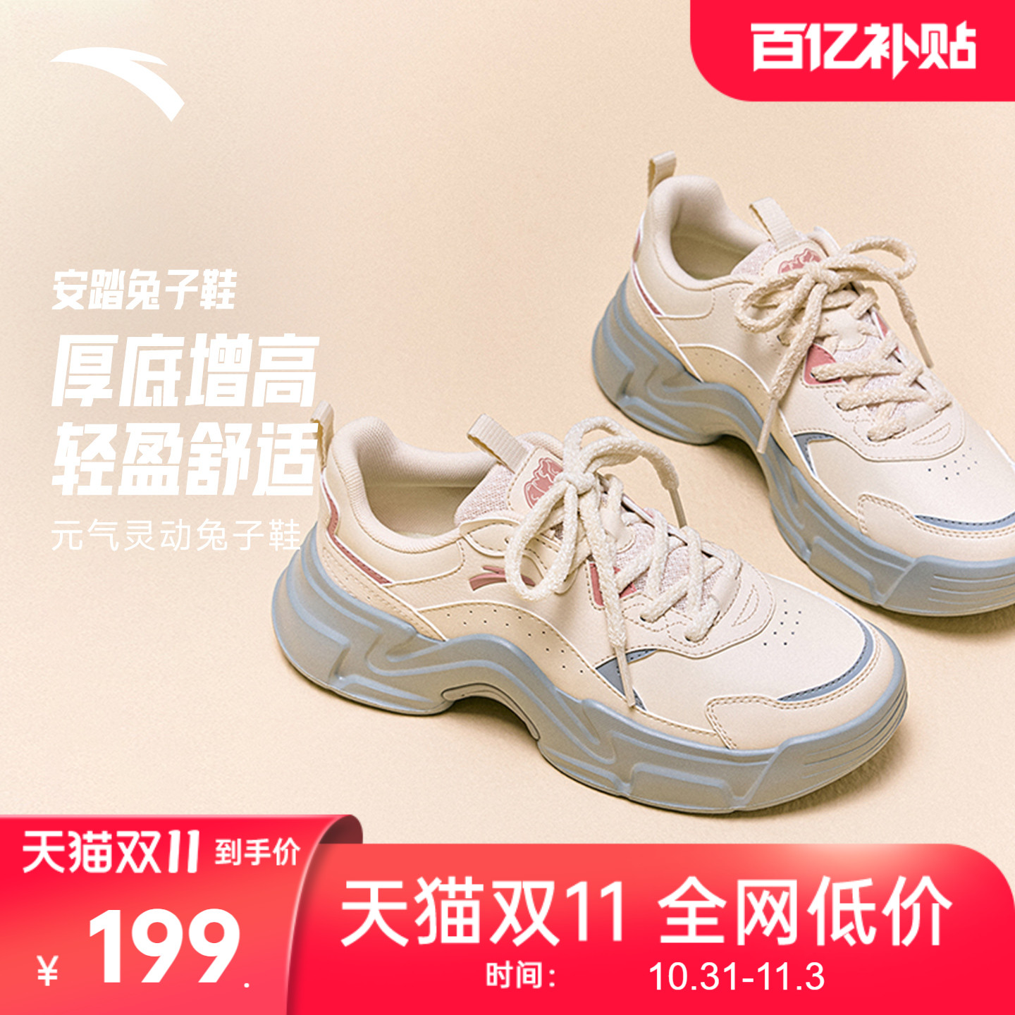 安踏兔子鞋丨时尚休闲鞋冬季新款女子潮流百搭软底舒适低帮运动鞋