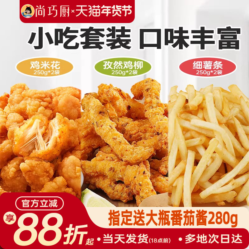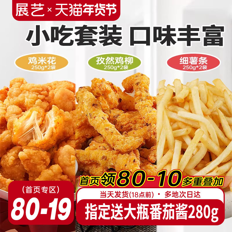 展艺鸡米花孜然鸡柳薯条冷冻小吃半成品套装家用烘焙空气炸锅食材