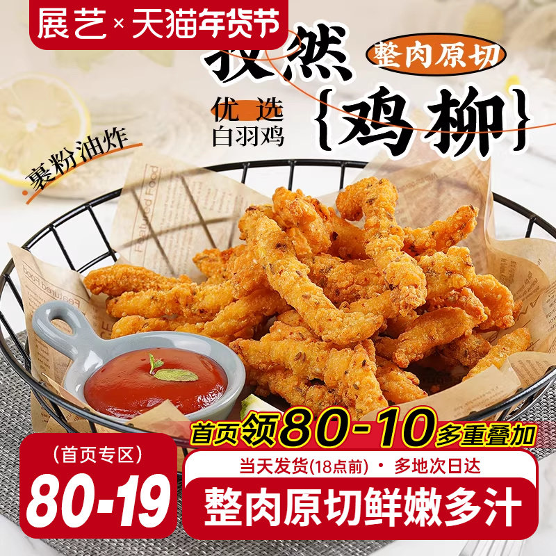 展艺孜然无骨鸡柳空气炸锅冷冻新鲜半成品鸡米花炸串鸡柳条旗舰店