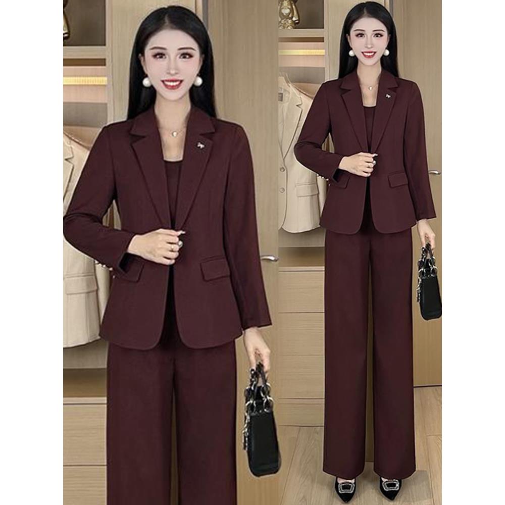 秋季职业西装套装女2025新款高级感时尚气质西服外套阔腿裤三件套