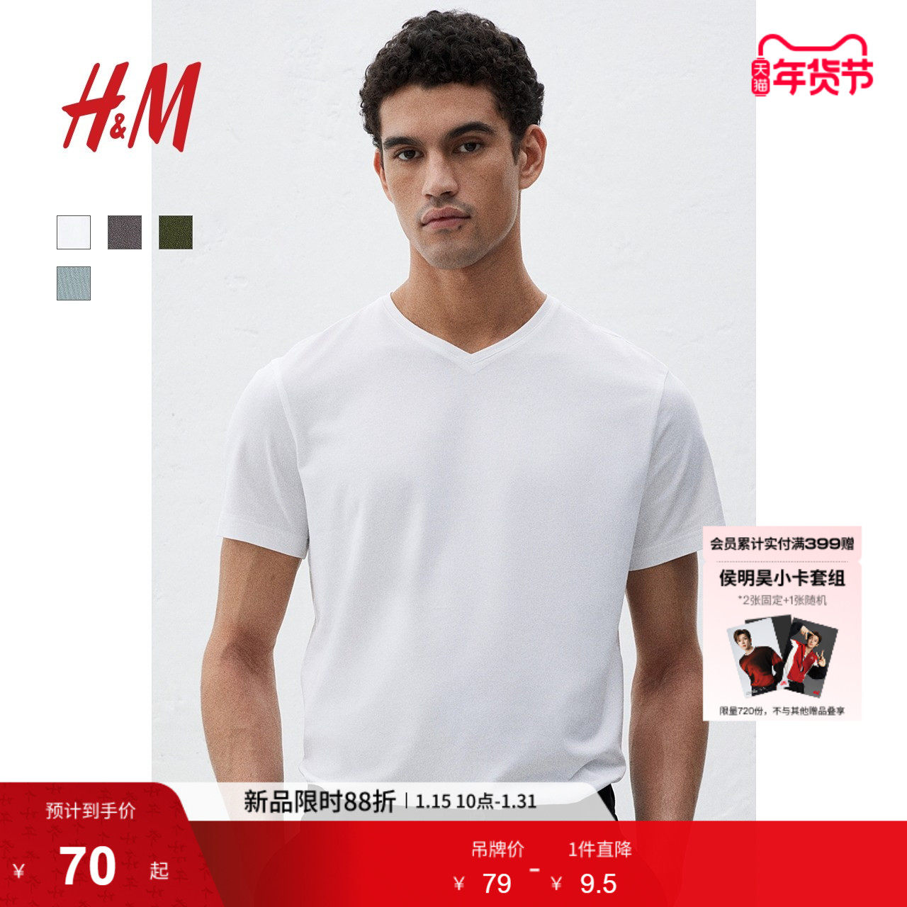 HM男装女装T恤春季内搭正肩V领上衣棉质短袖打底衫衣服0570003