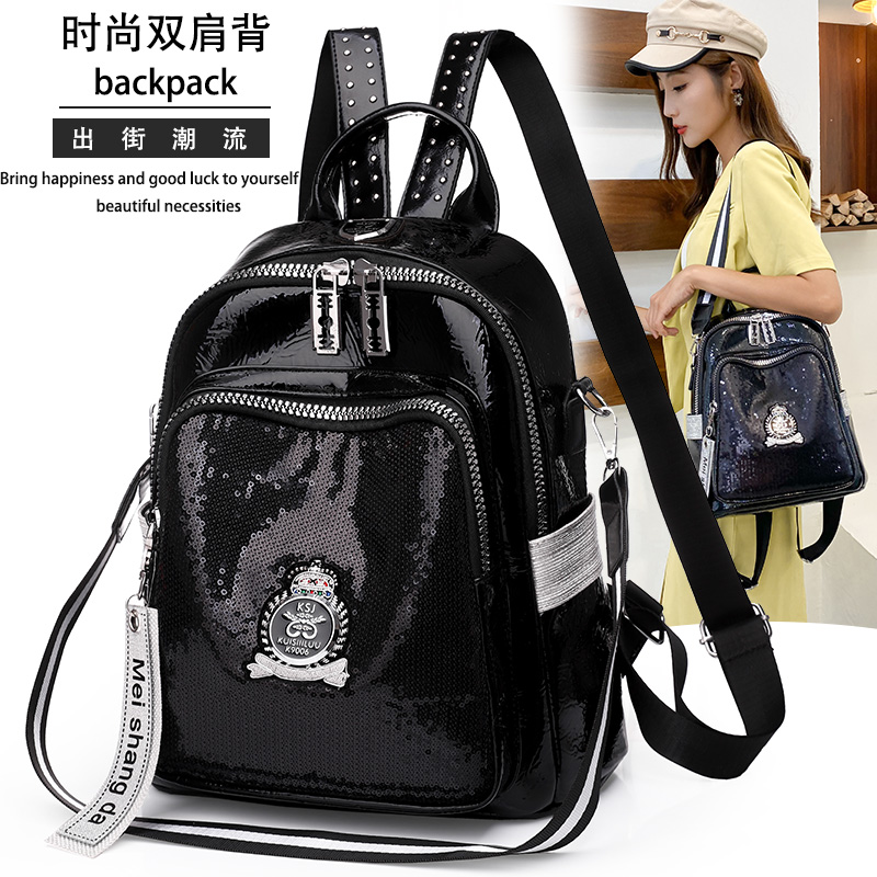 秋季新款大容量pu软皮双肩包女2021韩版铆钉时尚旅行背包学生书包