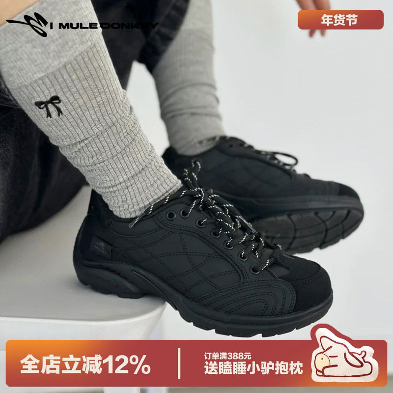 多嘴驴Donkey黑色德训鞋女原创小众复古百搭休闲登山鞋运动赛车鞋