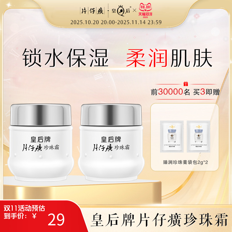 2瓶19.9皇后片仔癀珍珠霜25g润泽保湿面霜膏滋润雪花膏不厚重秋冬