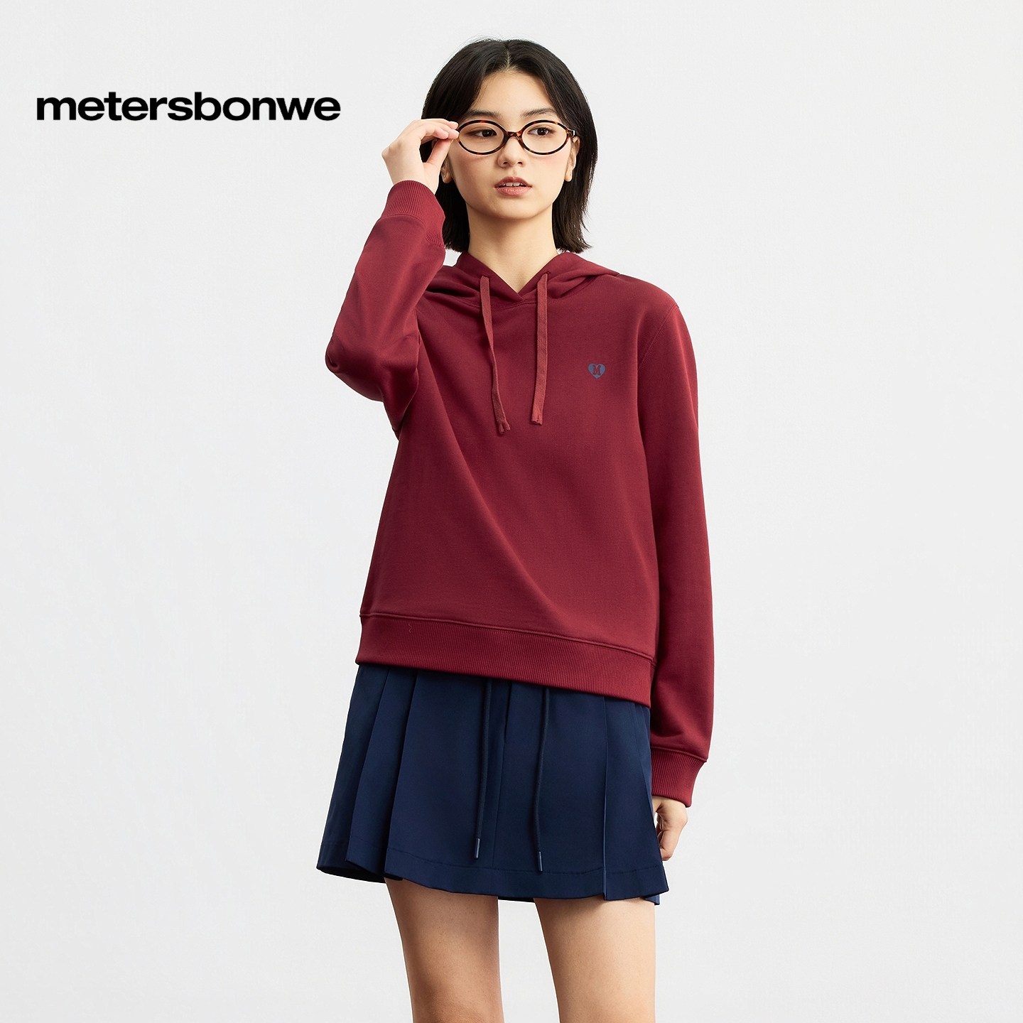 美特斯邦威卫衣女2026春季新款潮流休闲红色短款连帽纯棉长袖上衣