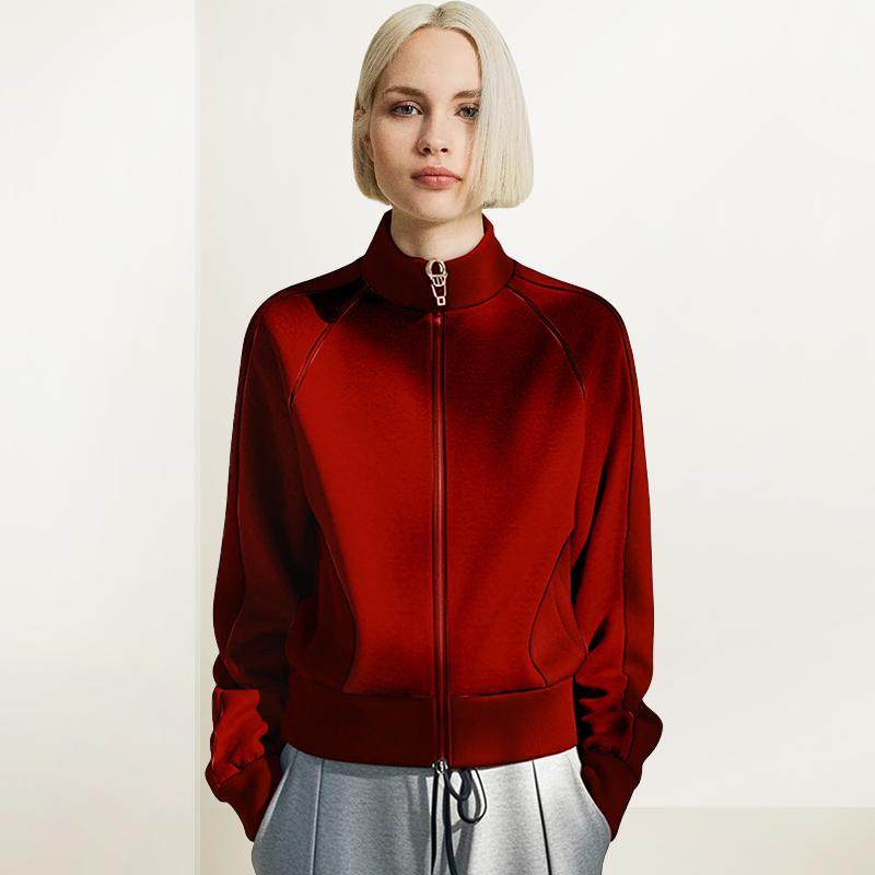 eihey诶嘿秋季复古红色短款外套时尚显瘦休闲运动连帽拉链卫衣女