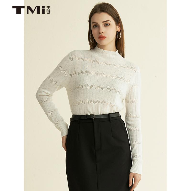 天谜打底衫百搭定钻简约镂空淑女羊毛针织衫2024冬新品TMi244116
