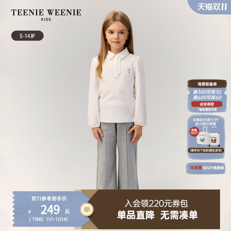 TeenieWeenie Kids小熊童装25年新款秋冬女童淑女小翻领T恤打底衫