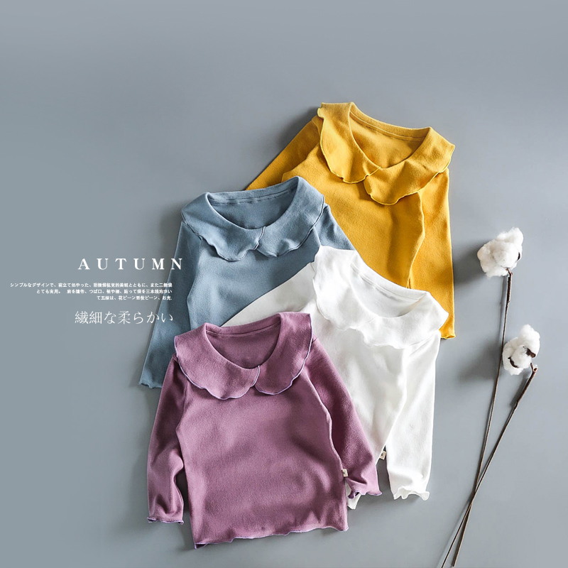 翻领淑女 童装女童春秋装纯棉弹力上衣宝宝长袖t恤百搭儿童打底衫