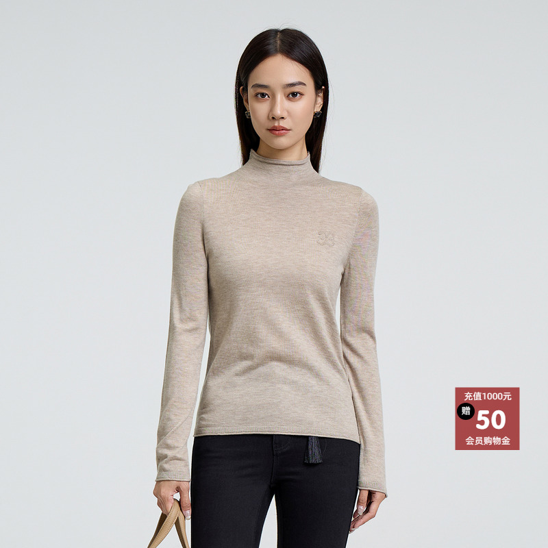 恩瑞妮专柜同款2025冬季新款百搭纯色气质淑女针织衫打底上衣女