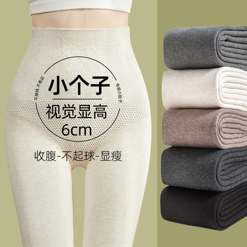 秋冬打底裤女外穿加绒加厚燕麦白色显瘦腿裤棉高腰收腹压力连裤袜