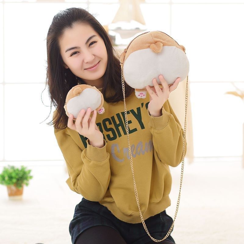 米炭柴犬斜挎包可爱少女胸包毛绒包包动漫钱包柯基屁股单肩痛包HO