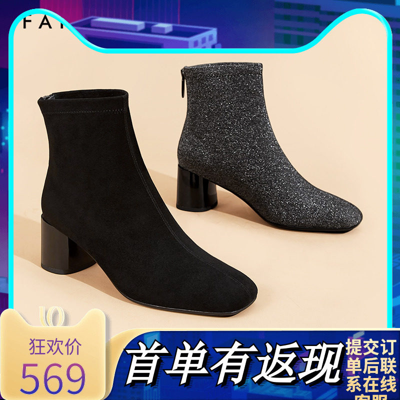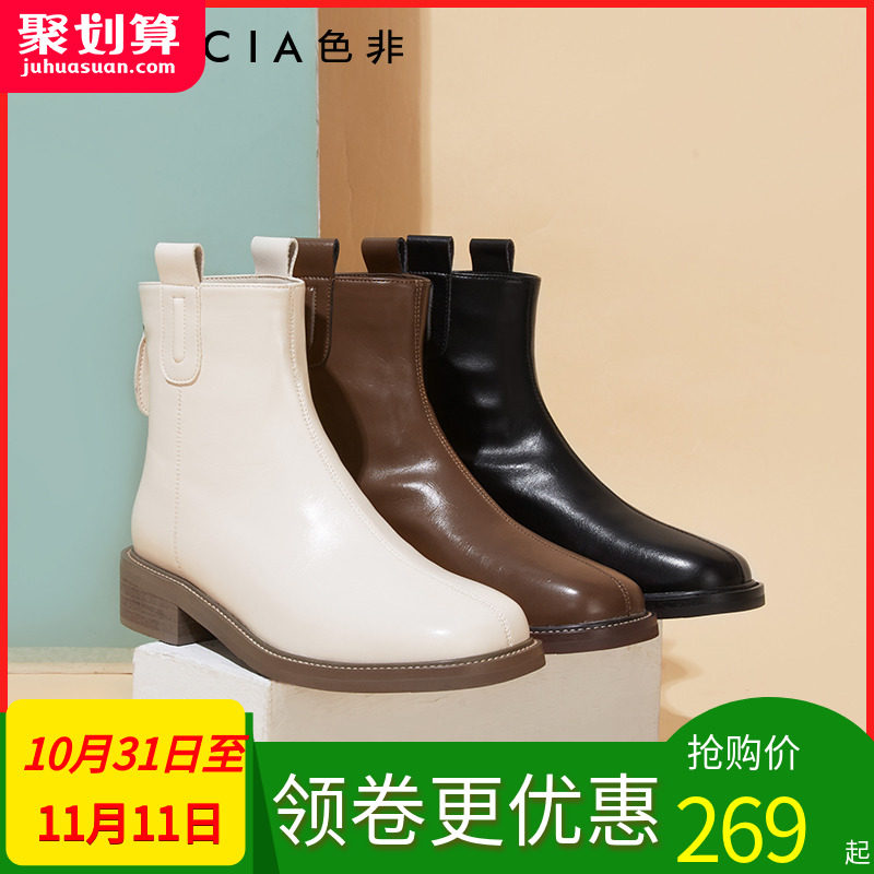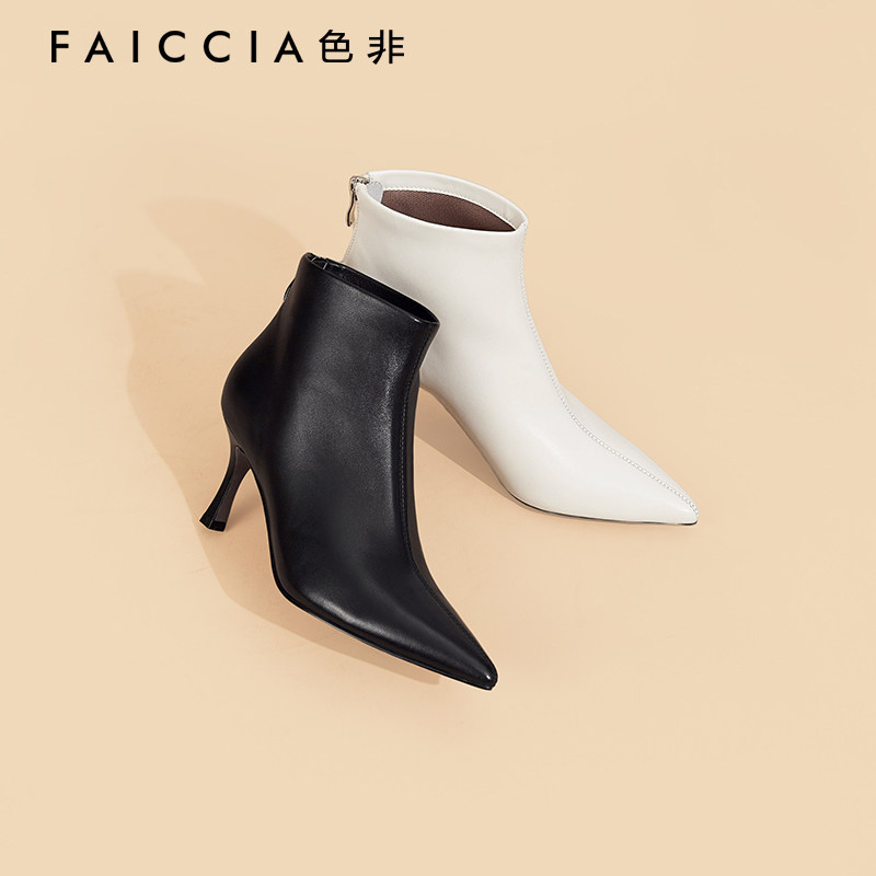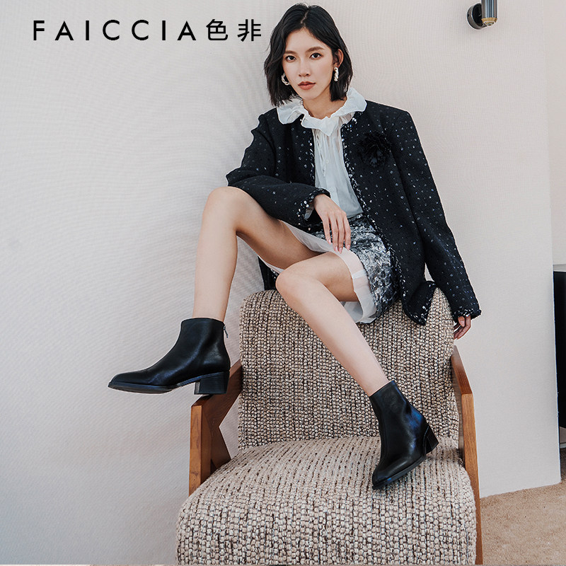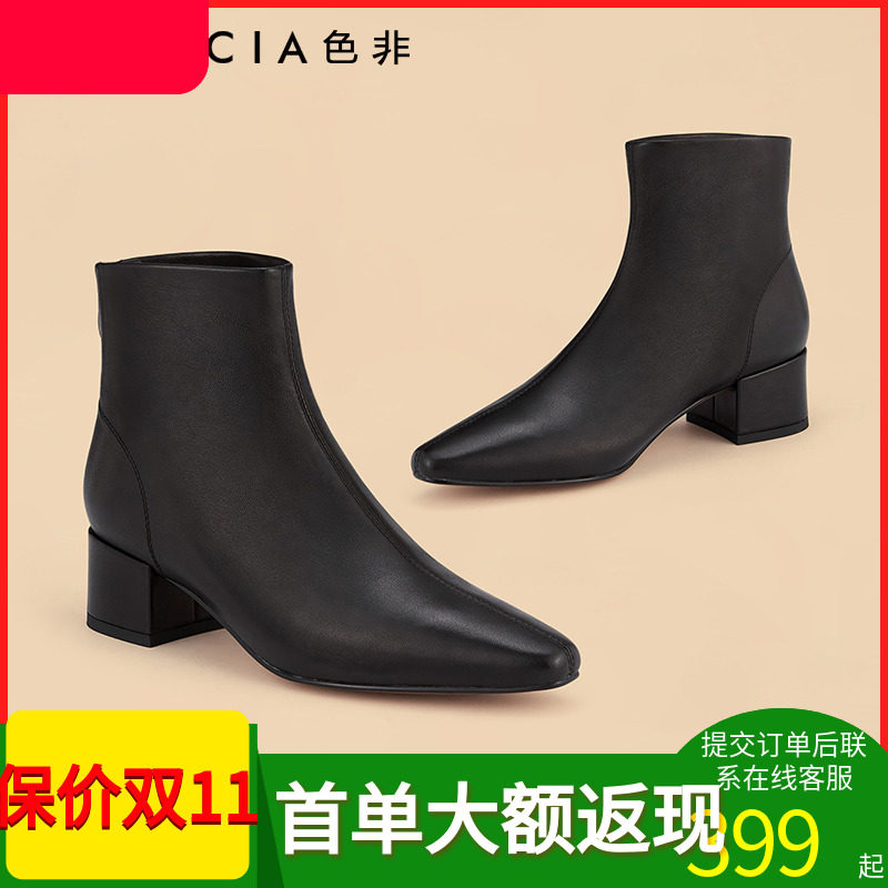 [羊皮版]色非高跟鞋粗跟女鞋2024秋冬新瘦瘦靴尖头气质小短靴踝靴
