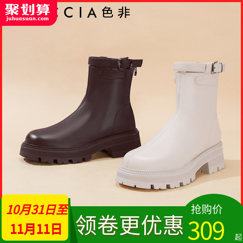 色非简约短筒骑士靴女2025秋冬季新款圆头厚底后拉链增高女鞋靴子