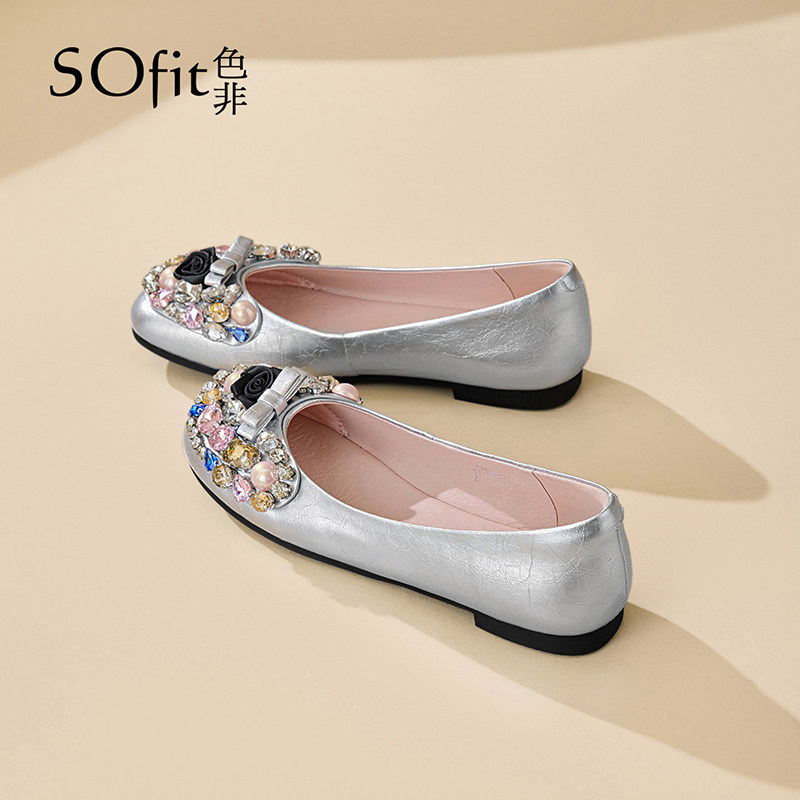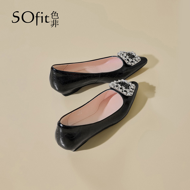 色非法式浅口单鞋女2026新款春季软底一脚蹬水钻瓢鞋气质百搭女鞋