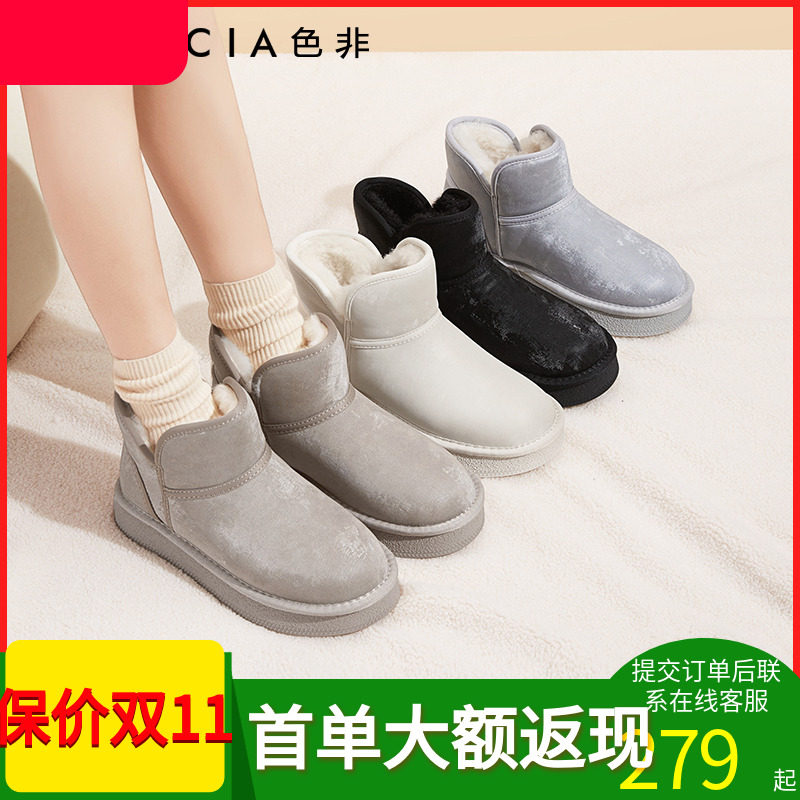 色非雪地靴女2024冬新款外穿V口短靴时尚面包鞋加绒加厚保暖棉鞋