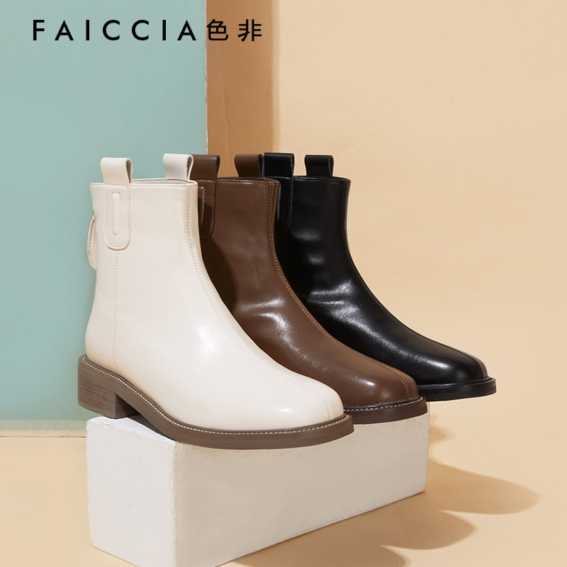色非简约百搭骑士靴女款2025新款圆头短靴短筒切尔西靴后拉链女鞋