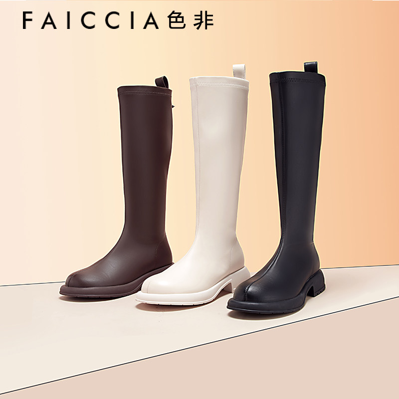 色非长筒瘦瘦靴女2023秋冬新款厚底增高百搭修身后拉链长靴骑士靴