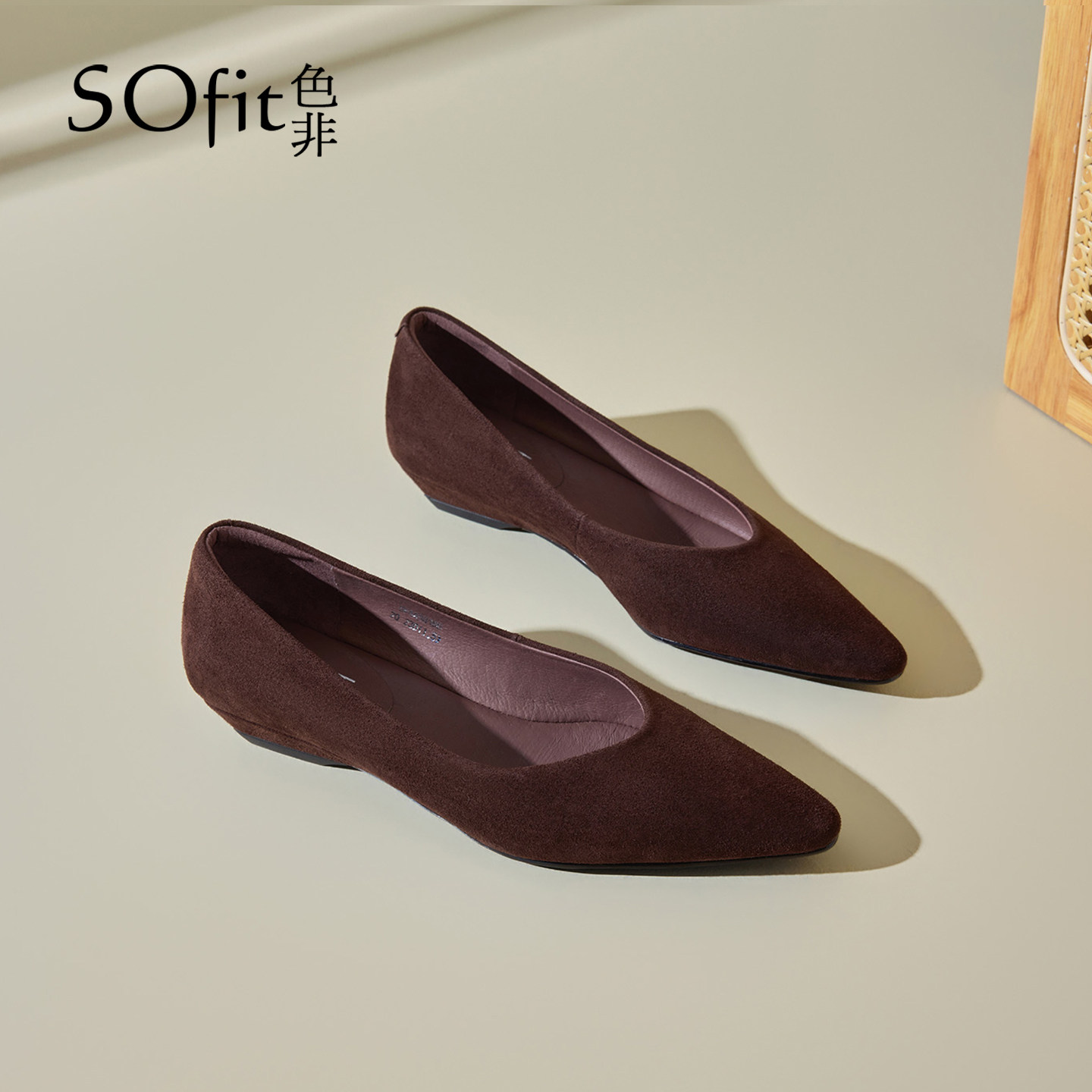 色非尖头浅口单鞋女2026新款春季咖色复古绒面通勤气质晚晚风女鞋