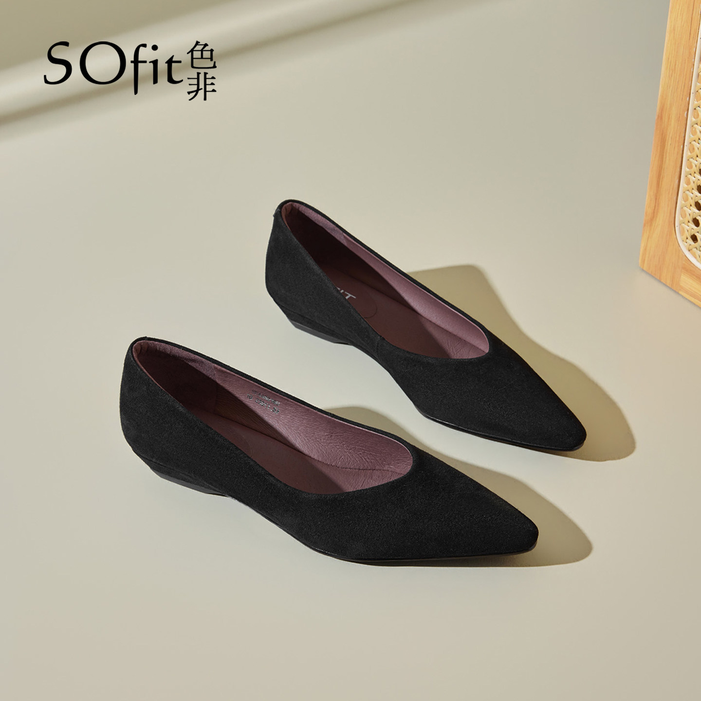 色非尖头复古浅口单鞋女2026新款春季黑色绒面气质通勤晚晚风女鞋