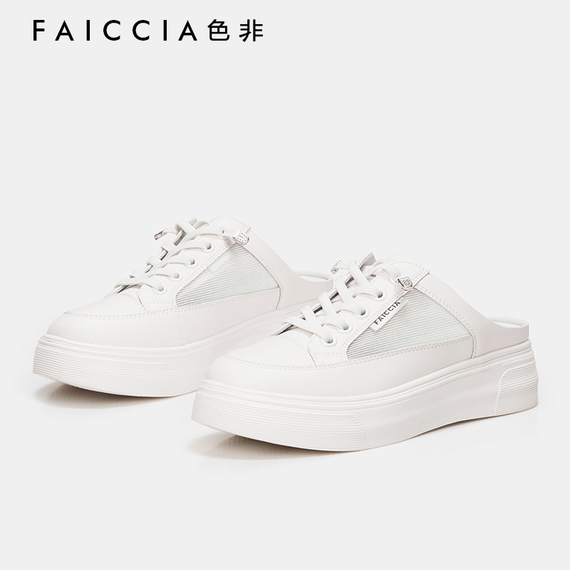 色非2023新款半拖鞋女夏厚底网面透气无后跟小白鞋包头凉拖B486C