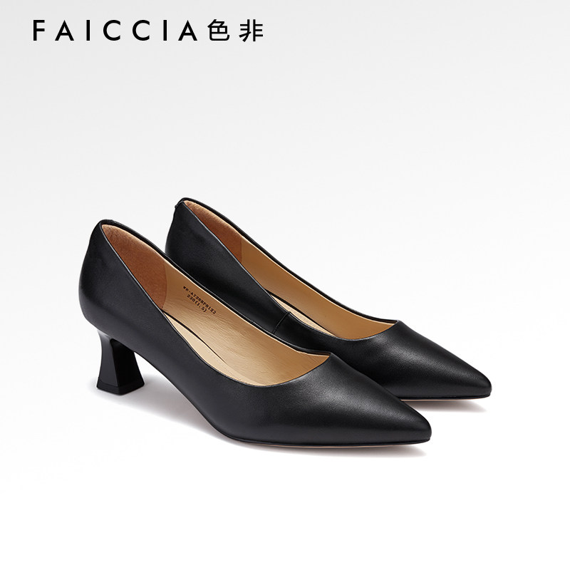 - 单鞋女 中跟 粗跟 尖头 浅口