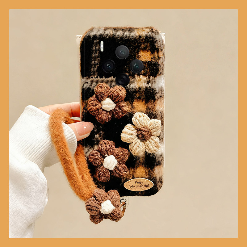 毛绒针织花朵适用vivox300pro手机壳x200ultra拼色x100spro格纹x90带x9plus挂绳x21i秋冬x60毛茸茸vivo女vovo