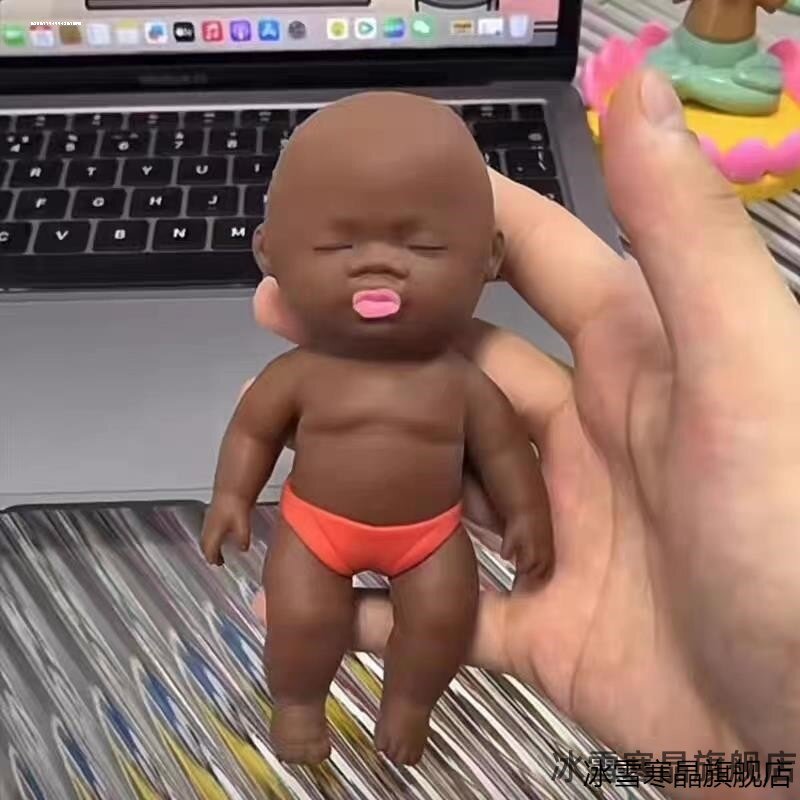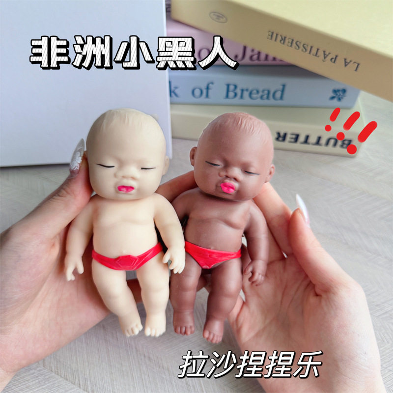 摆件解压减压可爱黑娃娃婴儿搞怪创意橡胶发泄小黑人回弹拉伸玩偶