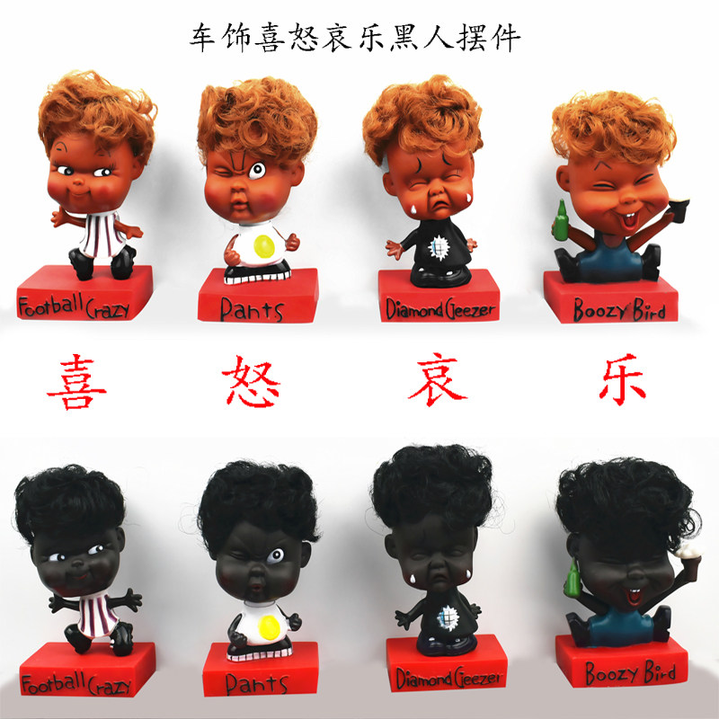 创意小黑人喜怒哀乐摇头娃娃车载摆件客厅卧室家居装饰品桌面摆设