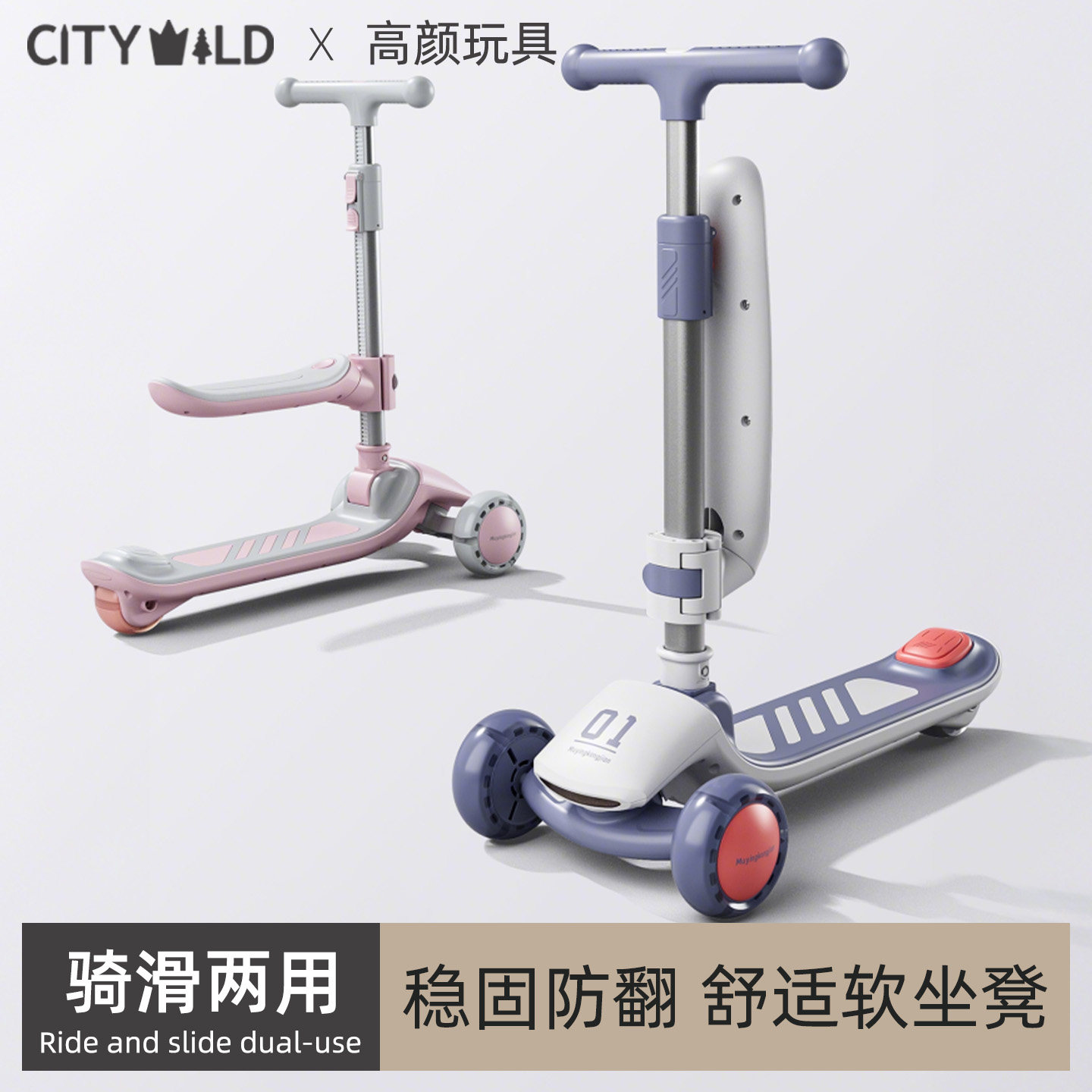 贝易儿童滑板车可坐可骑滑1-3-6岁男女孩折叠踏板车学步遛娃神器