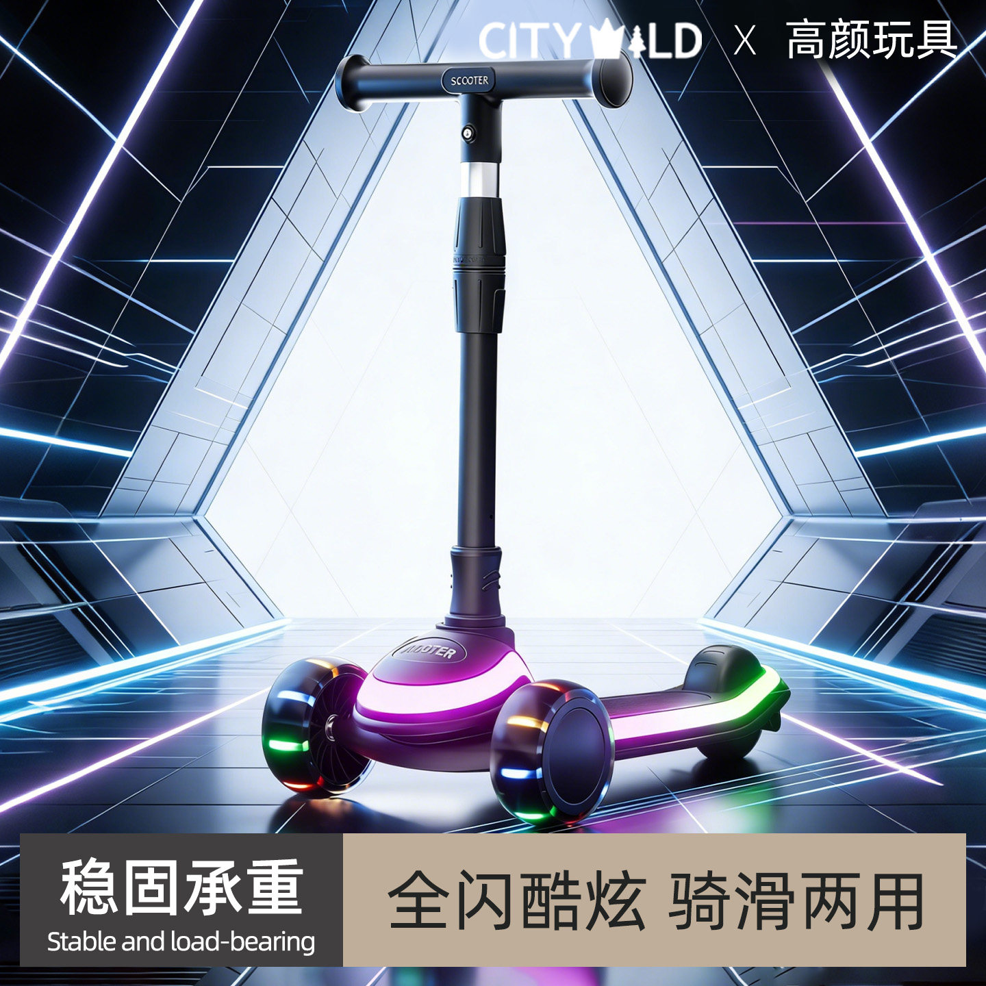 滑板车儿童1-3-6-8岁小孩踏板折叠男女宝宝单脚4轮闪光滑滑溜溜车