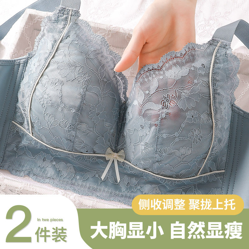 新款调整型文胸大罩杯全罩杯大胸显小薄杯记忆软钢圈蕾丝花边内衣