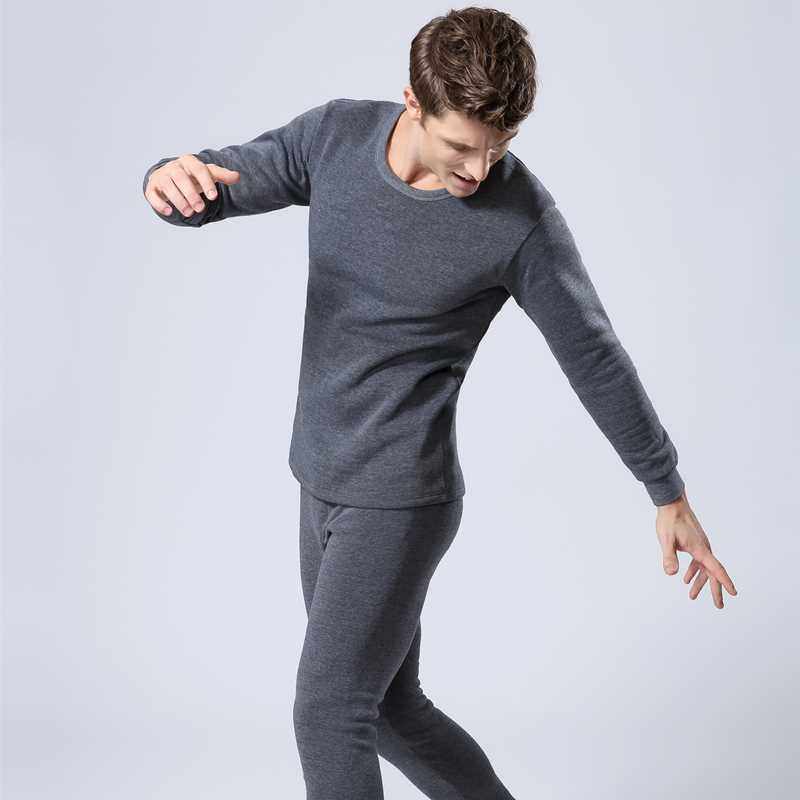 德绒磨毛37度恒温发热保暖内衣男士套装加绒加厚内穿秋衣秋裤冬季