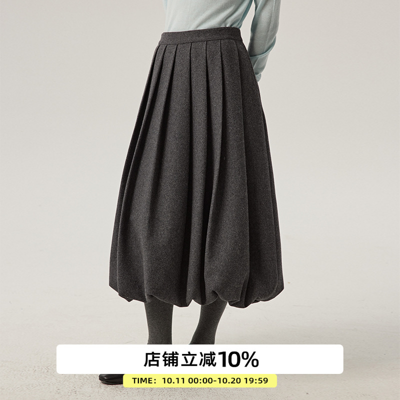 omont蛋挞家 50%毛高腰毛呢蓬蓬花苞裙子冬季毛呢中长半身裙