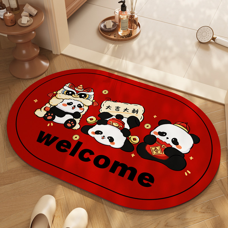 红色喜庆卡通吸水硅藻泥软垫防滑垫卫生间拉浴室门垫新年地毯垫子