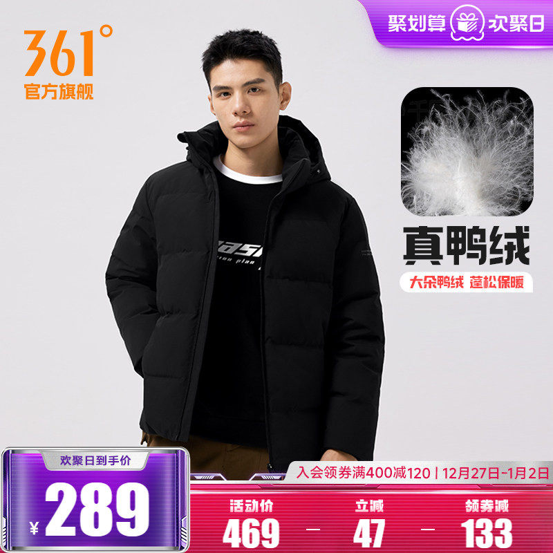 361羽绒服男2025冬季男士加厚保暖连帽羽绒服无缝羽绒运动外套男