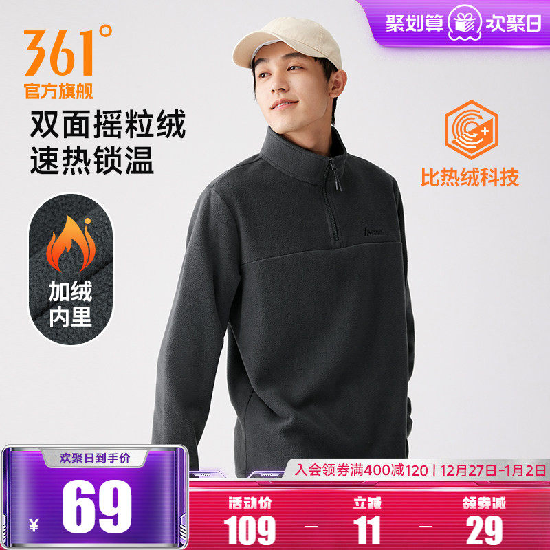 361运动卫衣男2025秋冬新款男士加绒半开襟卫衣摇粒绒冲锋衣内胆