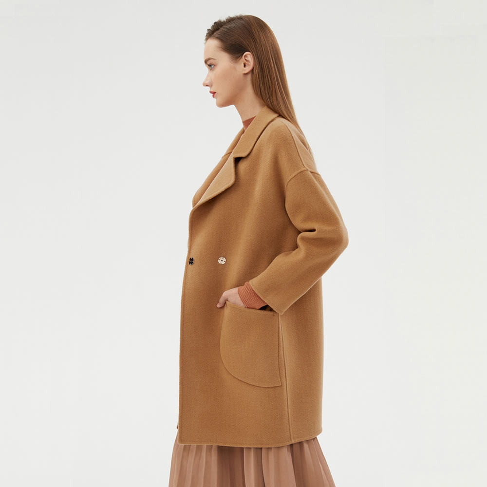 秋冬新款双面羊绒大衣女中长款小个子纯羊毛呢子工装毛呢外套大码