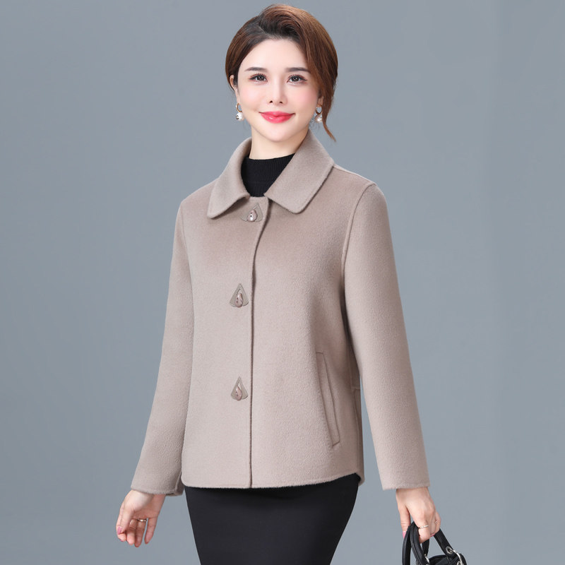 反季秋冬双面羊绒大衣女短款小个子妈妈装双面呢显瘦大码毛呢外套