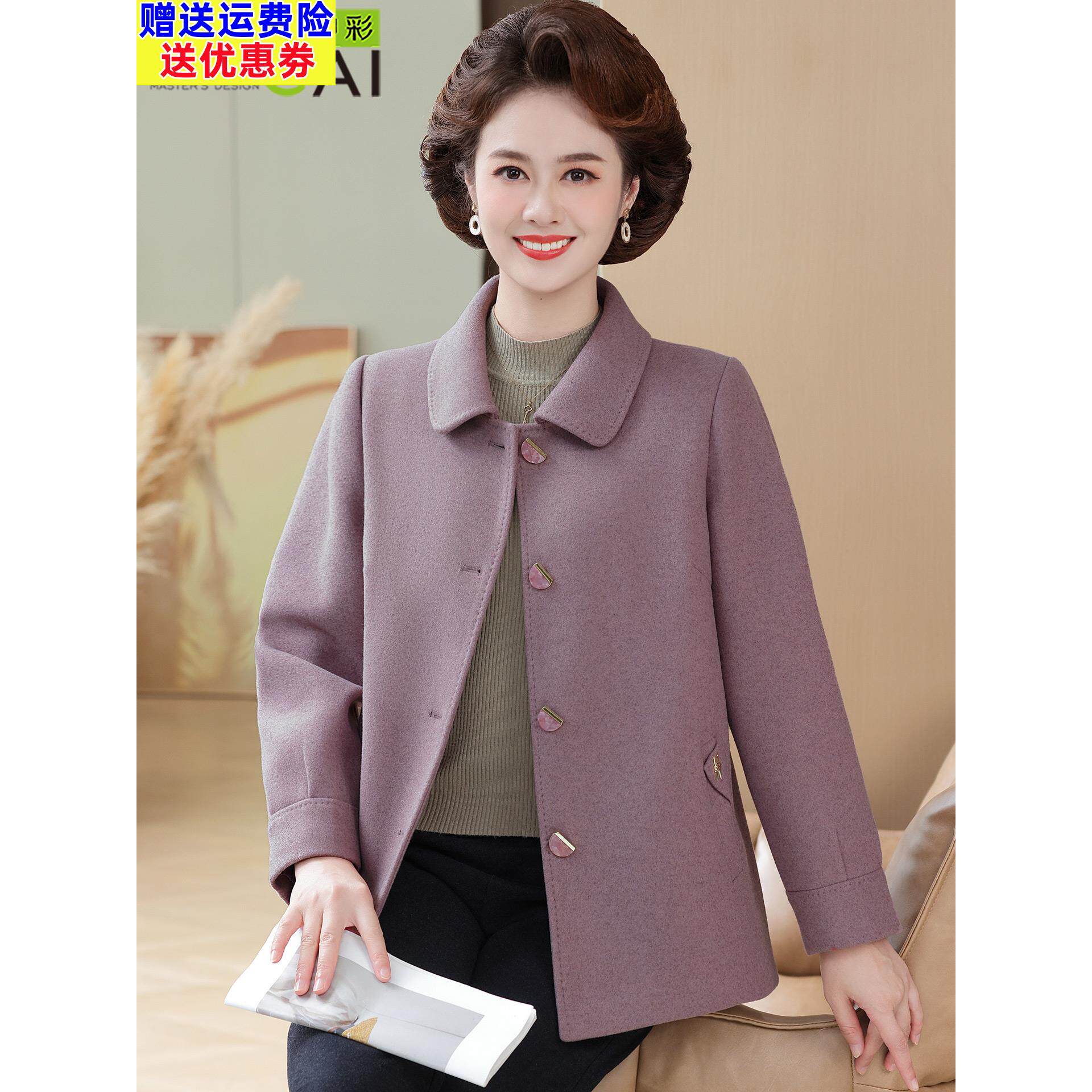 秋冬新款中老年羊毛呢大衣双面羊绒女短款妈妈装洋气大码毛呢外套