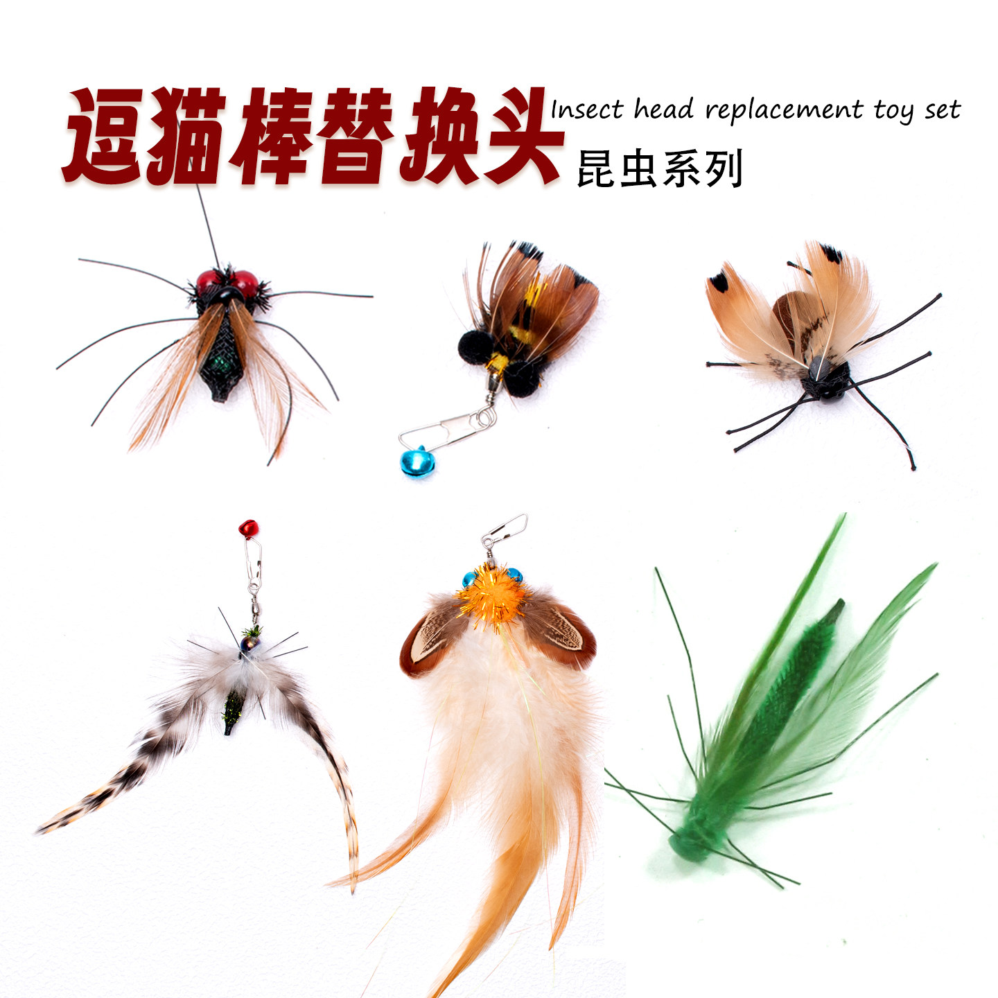 猫玩具仿真昆虫逗猫棒替换头小飞虫苍蝇蜜蜂铃铛羽毛手工猫咪丰容