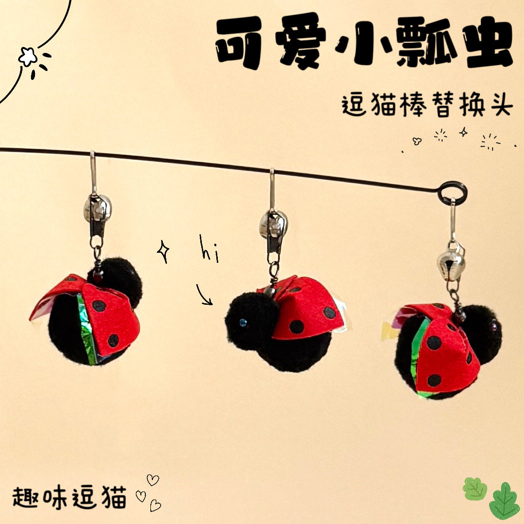 猫玩具逗猫棒替换头七星瓢虫仿真昆虫逗猫神器带铃铛互动解闷狩猎