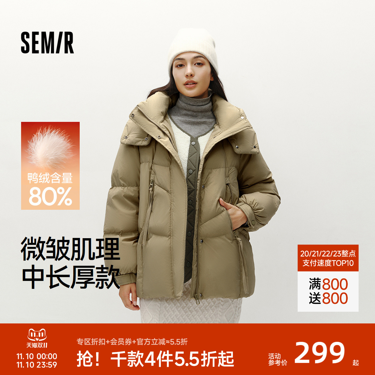 森马羽绒服女冬季中长款厚款80绒子宽松连帽质感简约百搭休闲外套