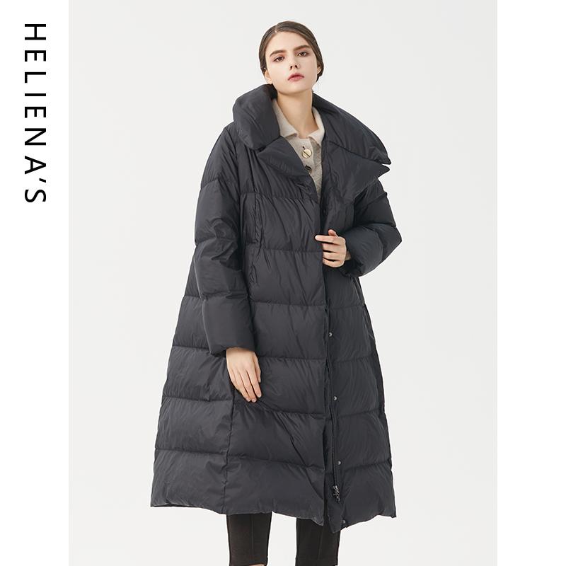 欧美潮流复古大码宽松羽绒服女中长款新款冬季连帽白鸭绒外套清仓