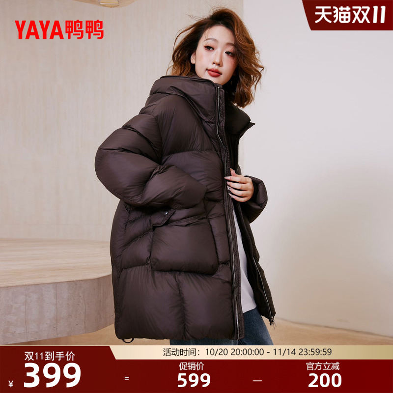 YAYA鸭鸭2025冬加厚时尚百搭休闲连帽潮流宽松女士中长款羽绒服